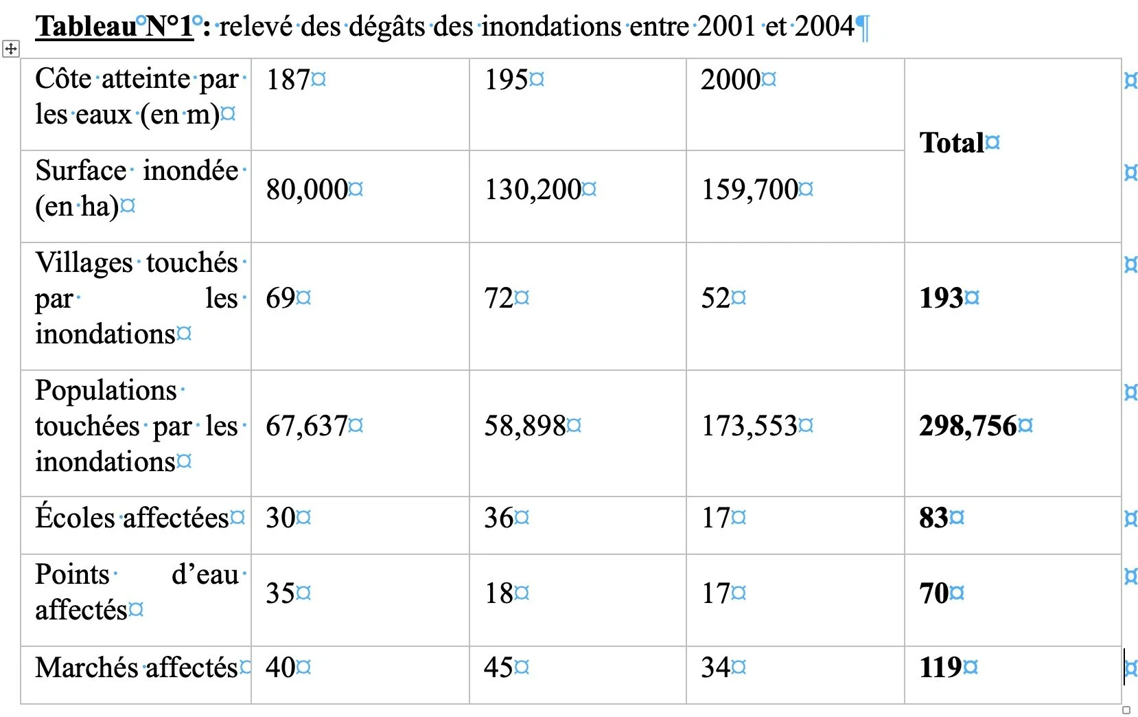 L’action du climat et l’irrégularité des pluies bouleversent profondément les habitudes des populations et mettent davantage les individus en situation de vulnérabilité dans une zone comme le bassin de la Bénoué, où les individus doivent en permanence s’adapter aux aléas climatiques pour assurer leurs moyens de subsistance. Il est vrai que la menace des changements climatiques est planétaire, mais la vulnérabilité des populations dans les Communes du pourtour de la Bénoué dans le Nord-Cameroun inquiète au point d’entraîner des conséquences graves, sur la survie des hommes dans cette zone qui ne cesse d’attirer continuellement de nouveaux migrants depuis les années 70, et se retrouve actuellement en train de subir les effets de la pression démographique. Le relevé des effets des inondations entre 2000 et 2020 montre une augmentation progressive des dégâts affectant en même temps l’espace et les infrastructures sociales et marchandes des populations. Paradoxalement, le lit permanent du fleuve Bénoué ne fait que régresser.